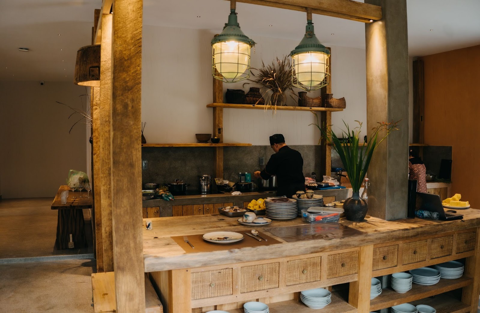 Cham Kitchen là nơi những câu chuyện, tiếng cười và bữa ăn tự tay chuẩn bị trở thành một phần ký ức đẹp của chuyến đi. Không gian được thiết kế mở, thoáng, mộc mạc với tone gỗ – trắng nhẹ nhàng, tạo cảm giác sạch sẽ và ấm áp.
